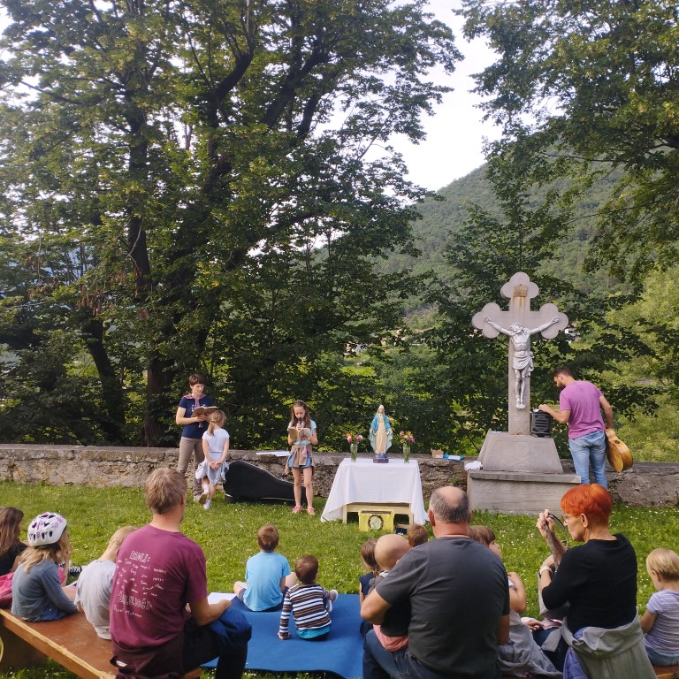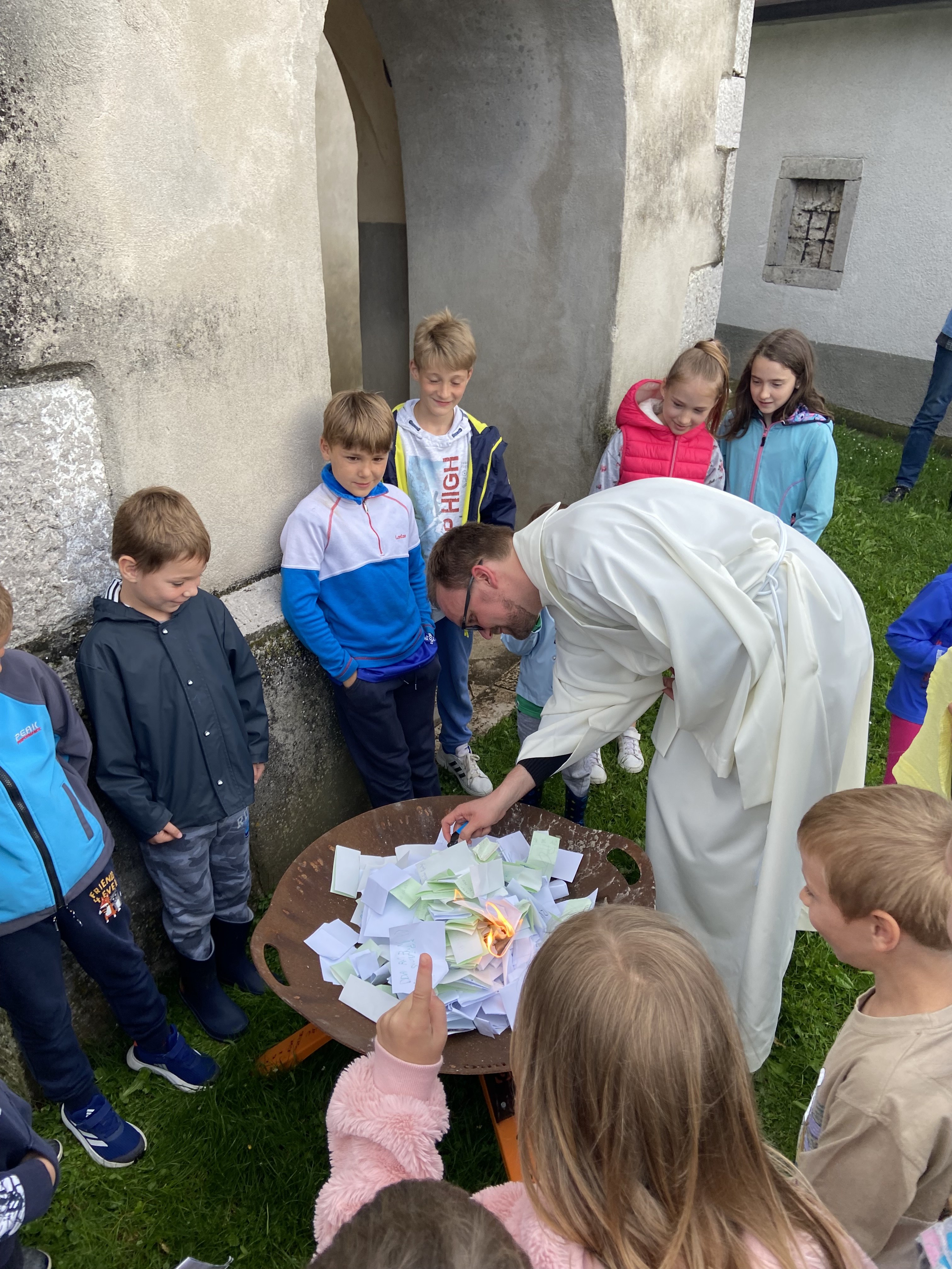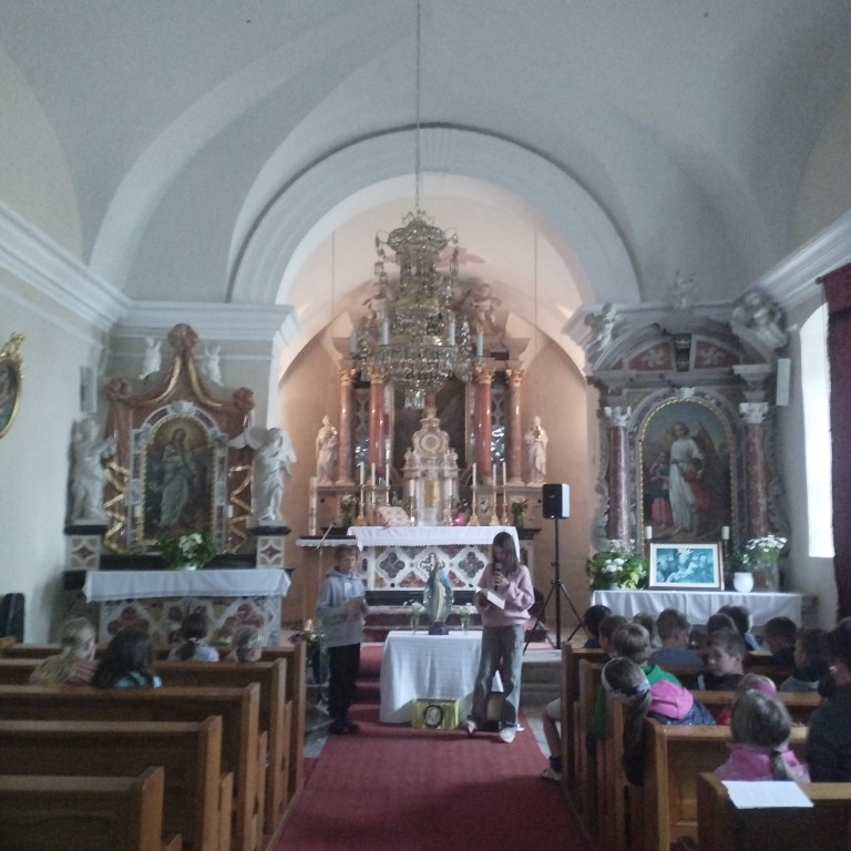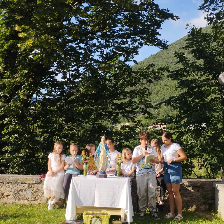 Tako bi lahko na kratko opisali šmarnično pobožnost za otroke in mladino v letošnjem maju. Redno smo se zbirali v/pri gradiški ali vipavski cerkvi in prisluhnili razmišljanjem otrok, ki jih je sestra Marta nagovorila, da naj v neugledno škatlo na sredi mize oddajo svoj molitveni namen. Tudi mi smo imeli svojo škatlo in vanjo darovali naše misli, prošnje in zahvale… za družine, brate, sestre, za uspeh v šoli, za odkrivanje naših talentov in poklicanosti, za mir v svetu, za prijatelje,… S pesmijo in molitvijo litanij pa smo se še posebej zaupali prav v Marijino varstvo. Šmarnice smo v petek, 31.5. 2024 zaključili s sveto mašo, zažigom vseh naših molitev izročenih v škatlo molitve ter druženjem ob sladoledu. Redni šmarničarji ter veroučenci, ki so sodelovali z branjem so prejeli tudi majhno pozornost v spomin in opomnik na neizmerno moč molitve.