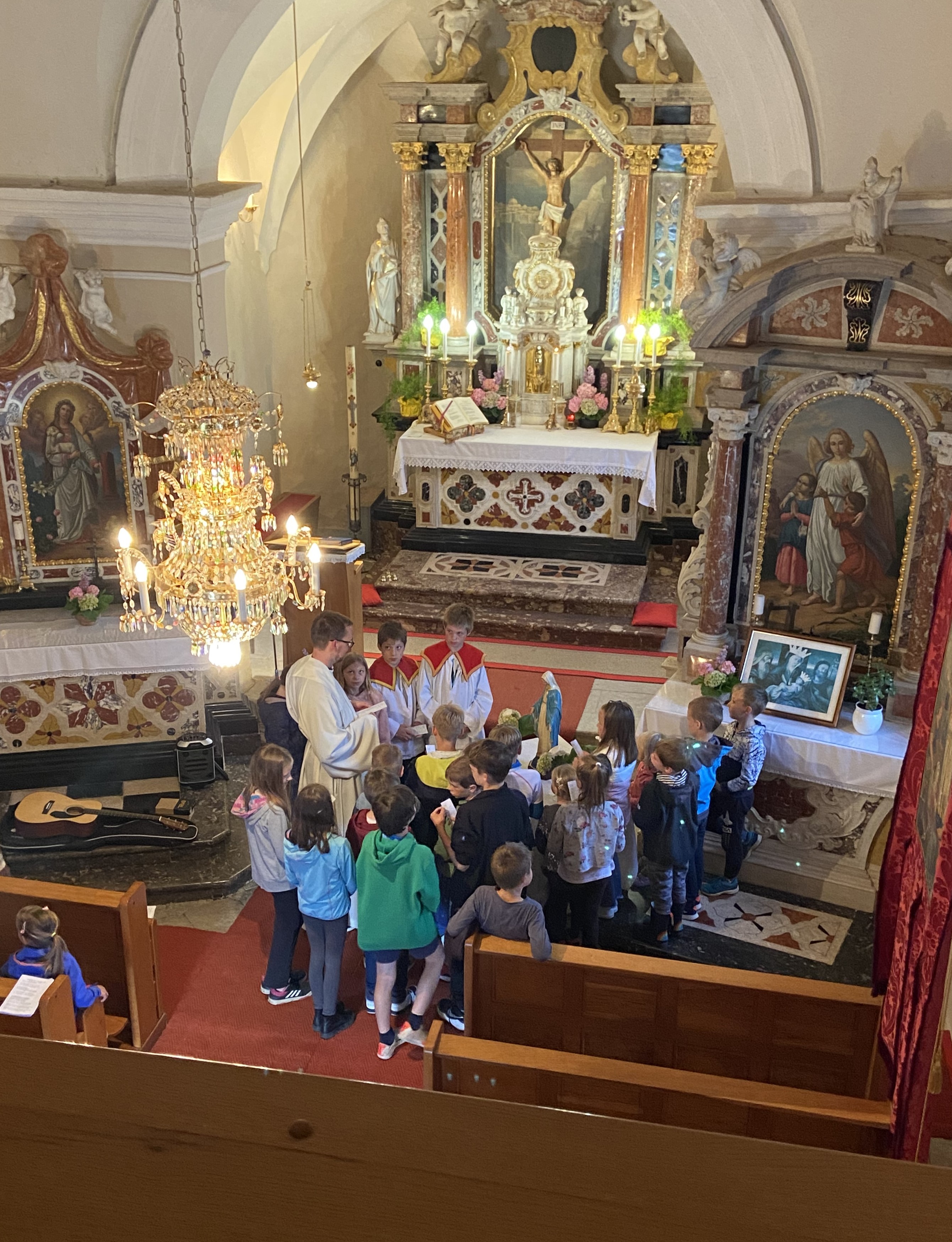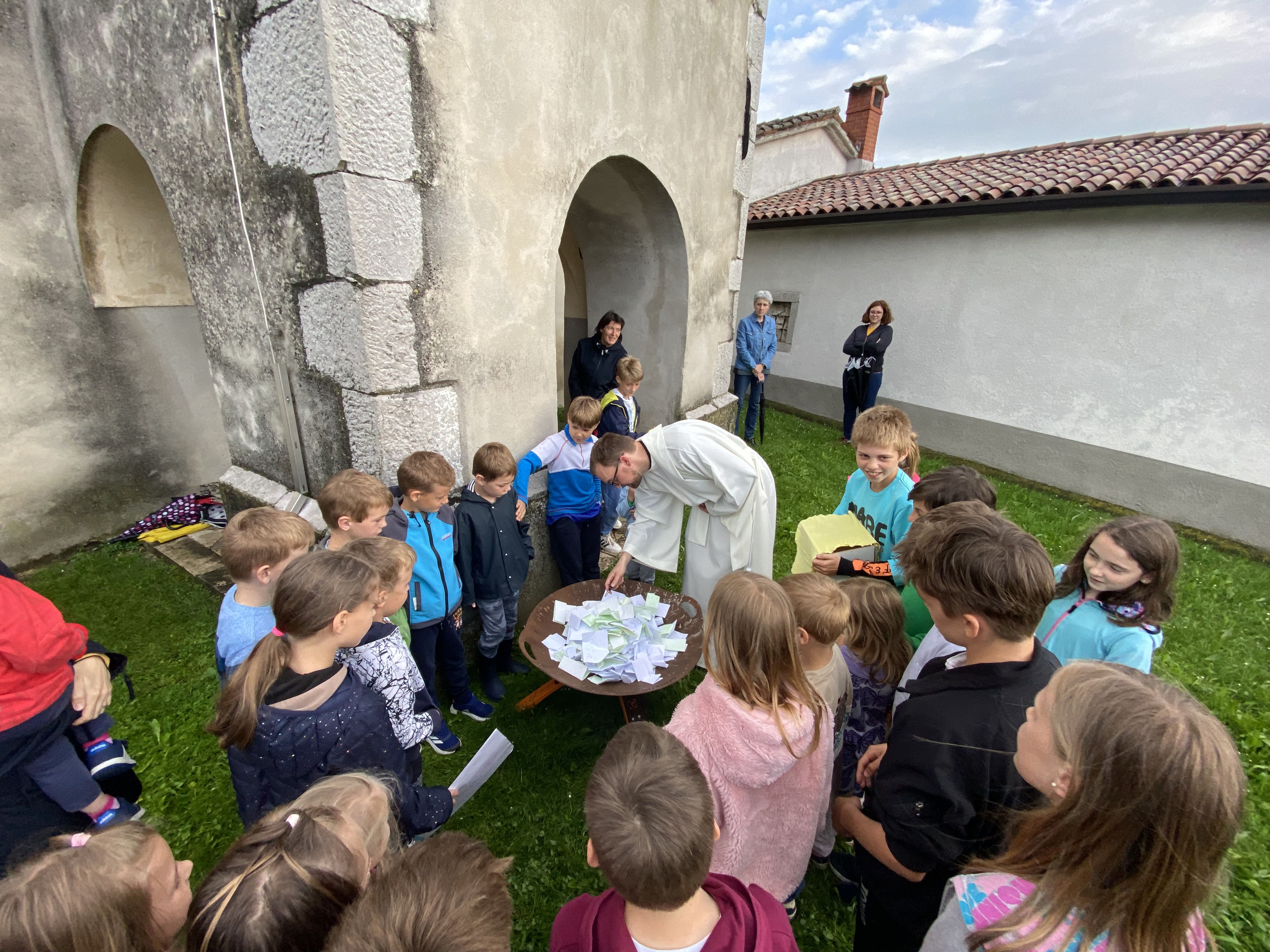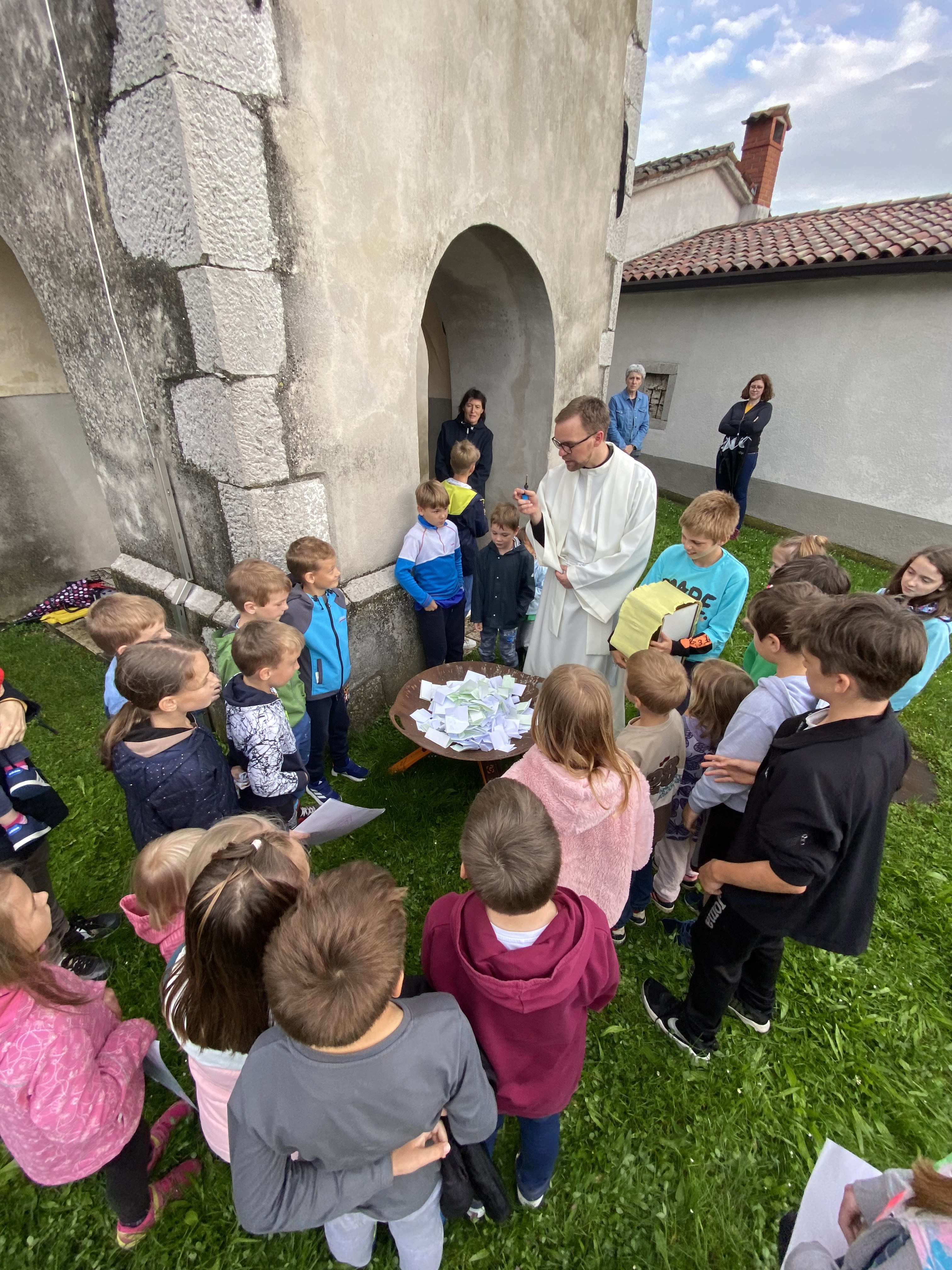 Tako bi lahko na kratko opisali šmarnično pobožnost za otroke in mladino v letošnjem maju. Redno smo se zbirali v/pri gradiški ali vipavski cerkvi in prisluhnili razmišljanjem otrok, ki jih je sestra Marta nagovorila, da naj v neugledno škatlo na sredi mize oddajo svoj molitveni namen. Tudi mi smo imeli svojo škatlo in vanjo darovali naše misli, prošnje in zahvale… za družine, brate, sestre, za uspeh v šoli, za odkrivanje naših talentov in poklicanosti, za mir v svetu, za prijatelje,… S pesmijo in molitvijo litanij pa smo se še posebej zaupali prav v Marijino varstvo. Šmarnice smo v petek, 31.5. 2024 zaključili s sveto mašo, zažigom vseh naših molitev izročenih v škatlo molitve ter druženjem ob sladoledu. Redni šmarničarji ter veroučenci, ki so sodelovali z branjem so prejeli tudi majhno pozornost v spomin in opomnik na neizmerno moč molitve.