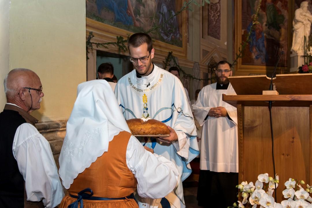 Sveta maša se je začela z izročitvijo novomašnega križa, ki sta ga novomašniku Gašperju prinesla brat Štefan in sestra Iva. Bratu duhovniku sta križ predala z besedami:
