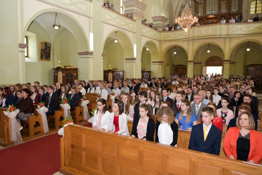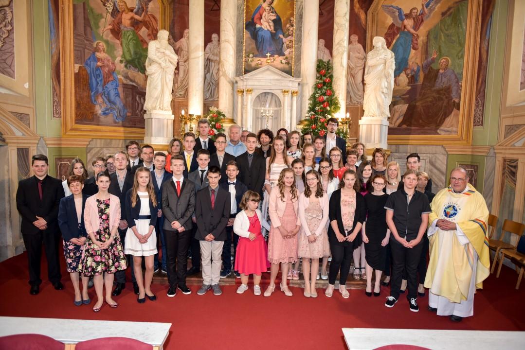 Tako so v nedeljo, 13. maja 2018, v lepem sončnem vremenu v sprevodu v cerkev vstopili z botri, sledili so jim gospod škof, gospod župnik in ministranti. Slovesnost se je začela in pesem je zadonela iz njihovih grl. Peli so sami ob pomoči animatorjev, Vokalne skupine Segno in ostalih vernikov v cerkvi. Obred je potekal zelo lepo in prisrčno v duhu evangelijskega naročila: »Verniki naj bodo eno, kakor sta Oče in Sin eno.« Pri sveti maši so birmanci sodelovali z branjem prošenj, zahval in berila, starši pa z nagovorom, prošnjo, branjem berila in zahvalo vsem, ki so kakorkoli pomagali birmancem.