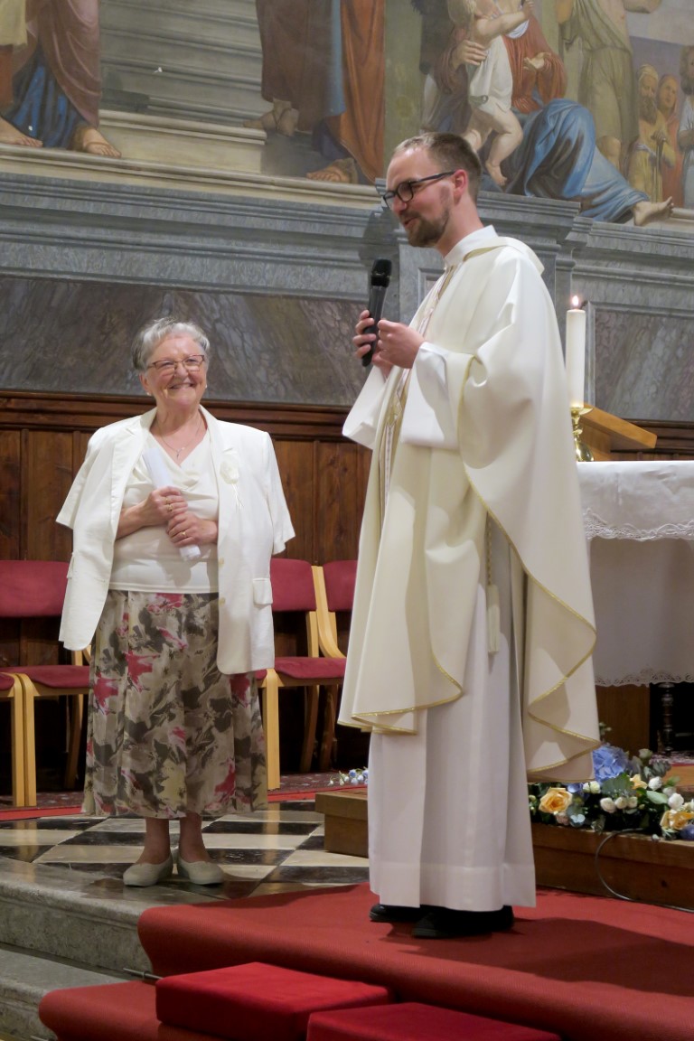 Samo ona ve, koliko časa, dela, prilagodljivosti, potrpežljivosti je darovala Bogu v čast in župnijski skupnosti v veselje. Po besedah g. župnika je zborovodja namreč druga najpomembnejša oseba v župniji. Še zadnjič je za to praznično sveto mašo pripravila program in da bi bilo res slovesno k sodelovanju povabila tudi svoja otroka in vnuke, ki so zapeli in zaigrali na violino in violončelo.