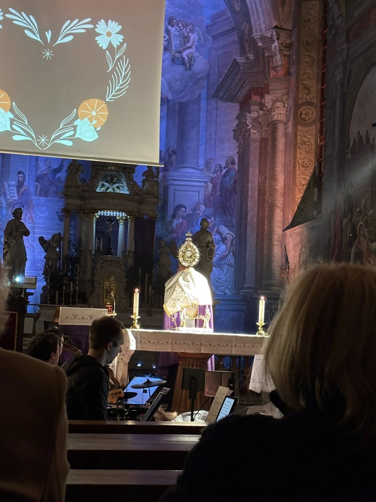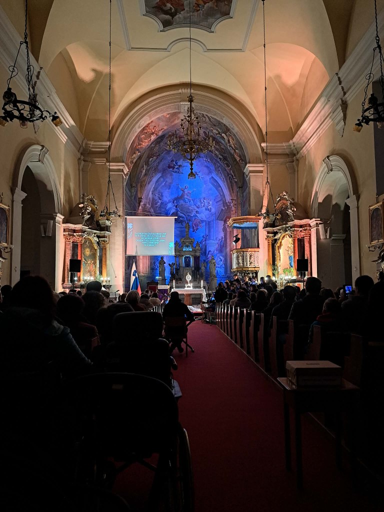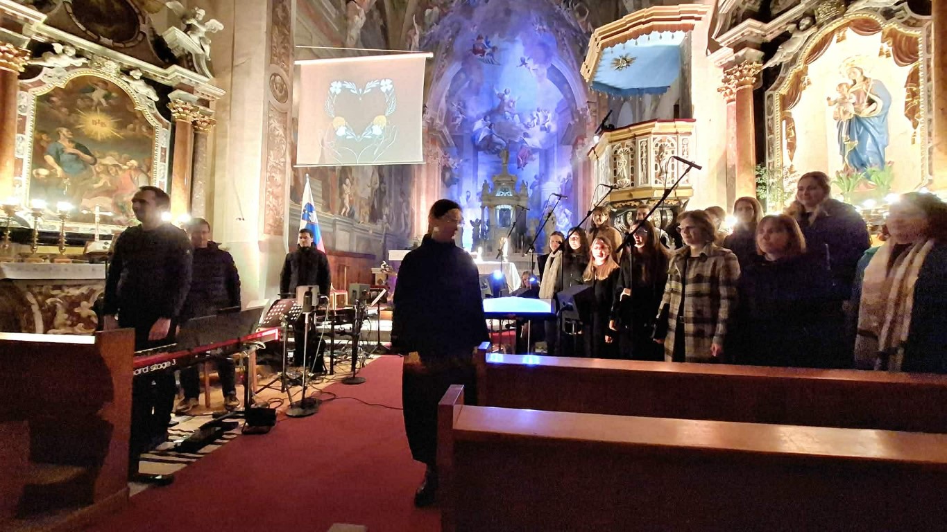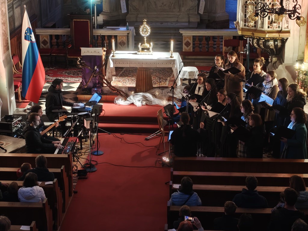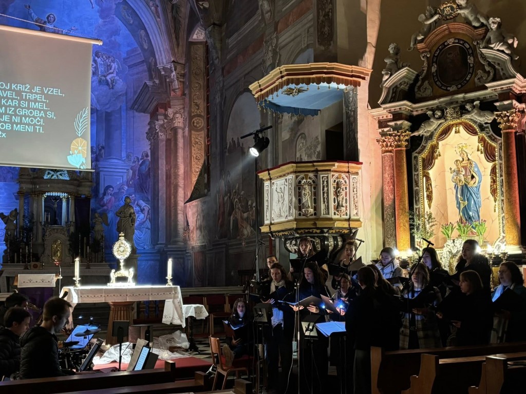 To so verzi pesmi Srce slavljenja, ki je bila vodilo in rdeča nit postne adoracije vokalne skupine Segno v domači cerkvi svetega Štefana. V nedeljo, 15. marca 2026, smo se zbrali ob glasbi in molitvi, da bi za trenutek odložili vse odvečne obremenitve ter se vrnili k tistemu, kar nam pomeni največ – k odnosu z Bogom.