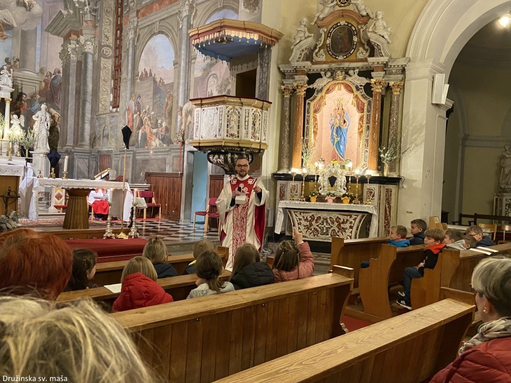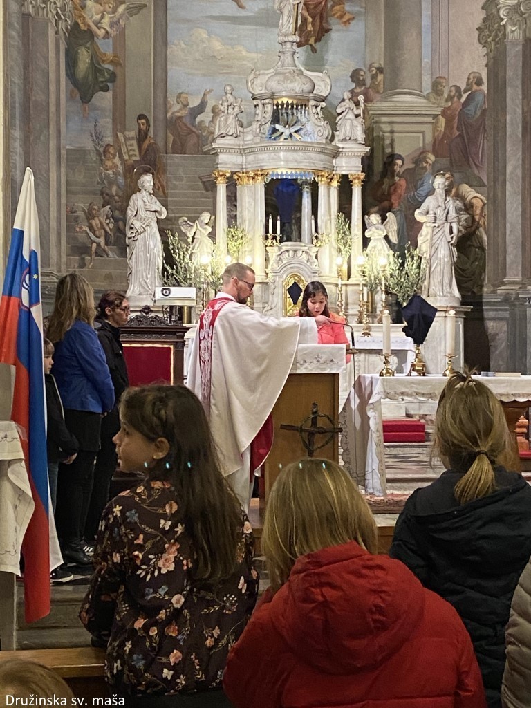 Teden družine smo sklenili v soboto, 23.3.2024, ko smo se zbrali pri družinski sveti maši. Z uvodno pesmijo »Je angel Gospodov«, in to z vsemi tremi kiticami, smo začeli obhajanje praznika Gospodovega oznanjenja.  Ob spremljavi kitar so zazvenele otroške in mladinske krščanske pesmi, tandemi otrok-mama so Gospodu izrekli prošnje, g. vikar Gabriel pa nam je v pridigi spregovoril kako pomembno je, da vestno ohranjamo molitev Angel Gospodov v našem vsakdanu, saj nas nagovarja in opominja, da sledimo Marijinemu zgledu in vsakič znova pogumno rečemo Bogu svoj DA.