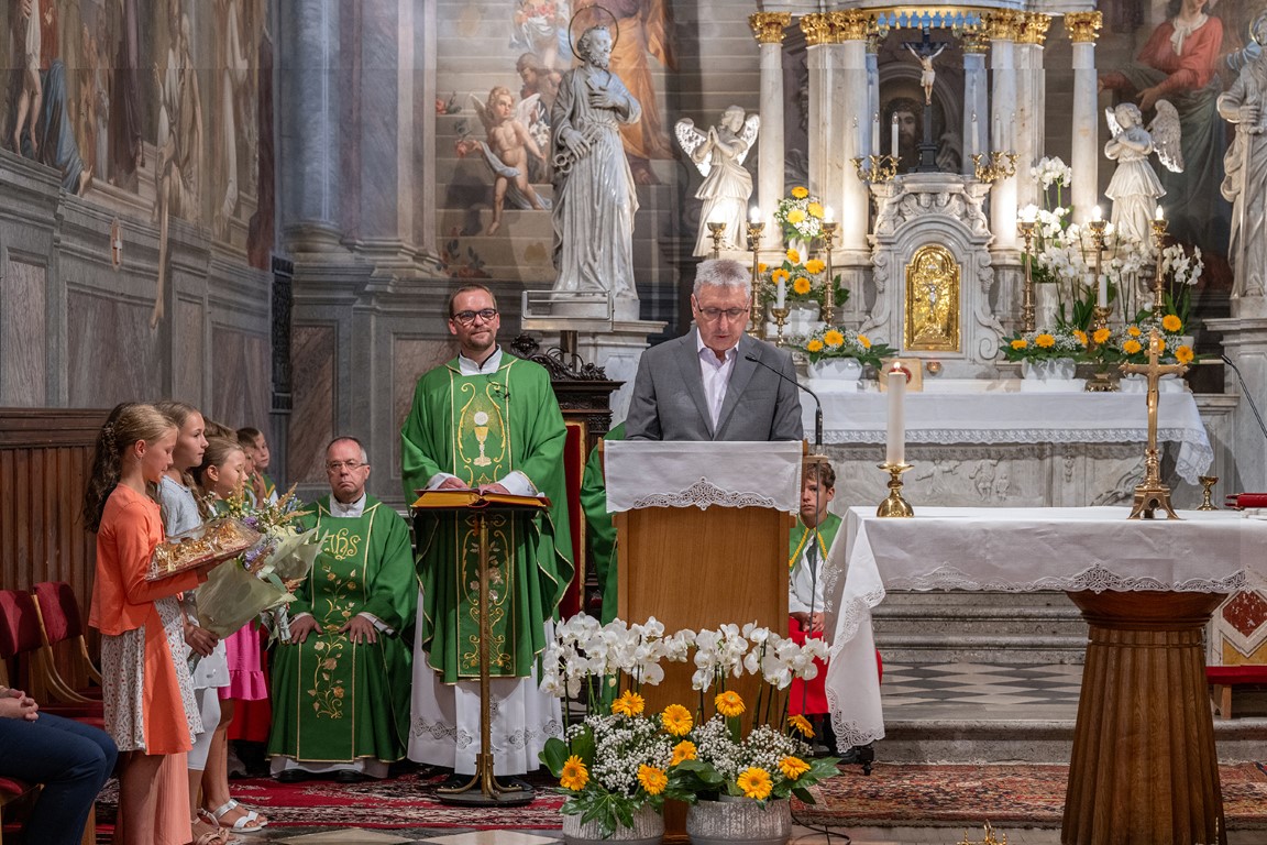 Ob sklepu svete maše je novega župnika in vikarja v imenu celotne župnijske skupnosti pozdravil član župnijskega pastoralnega sveta Danilo Guštin, tudi s prošnjo za njuno nenehno podporo župniji za življenje v veri, upanju in ljubezni, za življenje v zavedanju, da je Gospod naša moč.